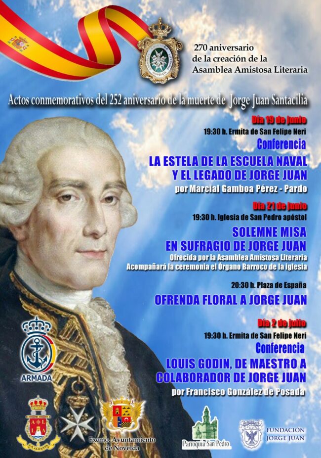 El próximo día 19 de junio comienzan los actos conmemorativos del 252 aniversario de la muerte de Jorge Juan en el 270 aniversario de la creación de la Asamblea Amistosa Literaria.