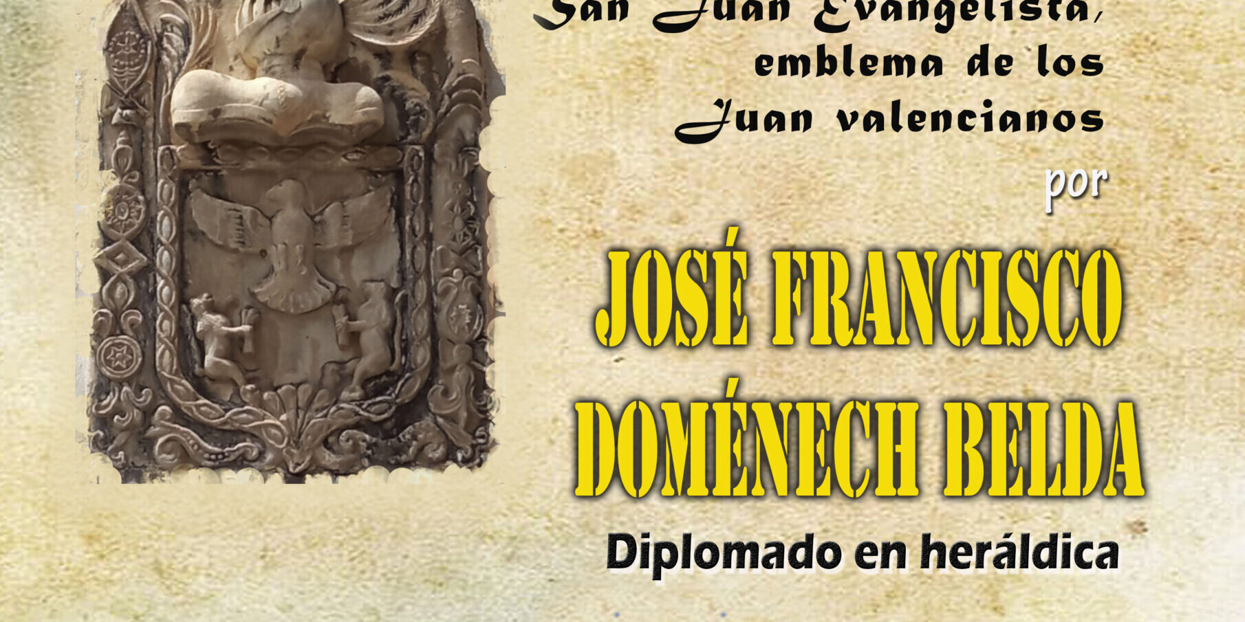 La Asamblea Amistosa Literaria de Novelda iniciará el próximo viernes 25 de marzo de 2022, su ciclo de conferencias anual con la exposición del Diplomado en Heráldica, José Francisco Doménech Belda, «La heráldica de los linajes «Juan» en el Reino de Valencia. El águila de San Juan evangelista, emblema de los Juan valencianos».El acto dará comienzo a las 19:30 horas en los Salones Parroquiales, calle Santa Cecilia, 9 de Novelda.