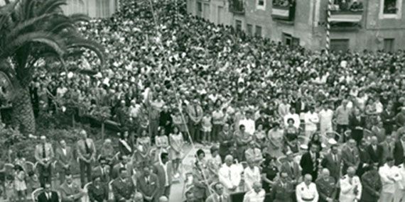 Atendiendo al ruego del Ayuntamiento, las empresas y comercios cerraron esa tarde, las calles se vistieron de fiesta y los balcones se engalanaron con banderas nacionales y cobertores.