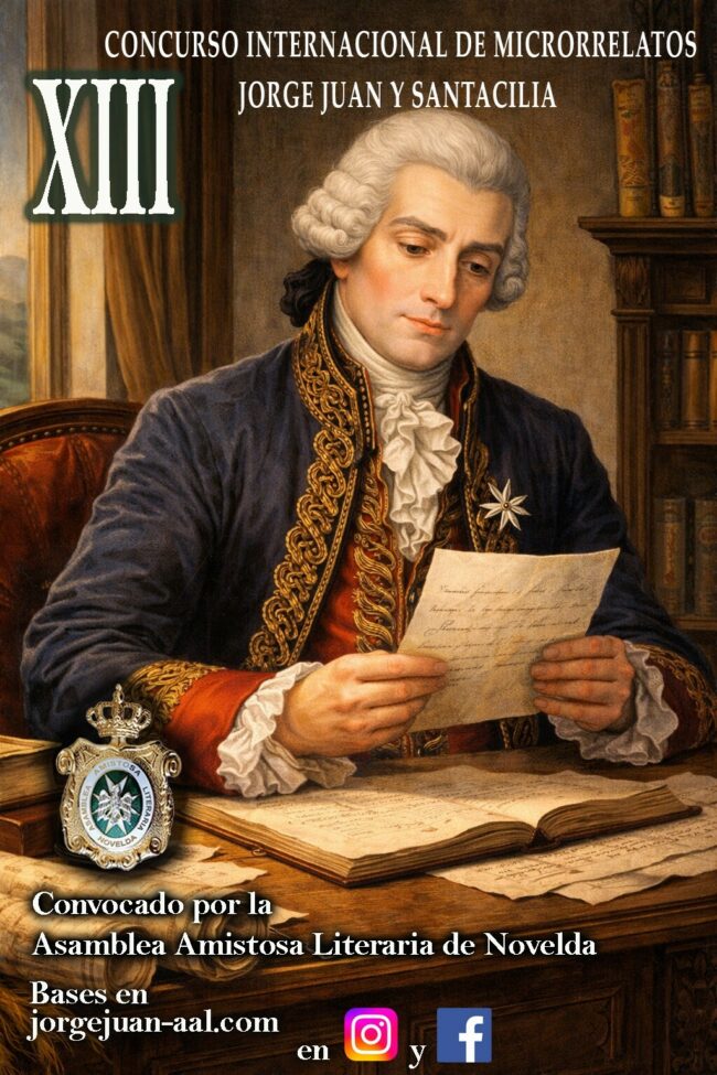 XIII CONCURSO INTERNACIONAL DE MICRORRELATOS“JORGE JUAN Y SANTACILIA”2026 BASES La Asamblea Amistosa Literaria de Novelda, con el fin de fomentar la creatividad literaria en relación con el Sabio Ilustrado Jorge Juan y Santacilia y su localidad de origen, Novelda, convoca el XIII Certamen Internacional de Microrrelatos “Jorge Juan y Santacilia”. La participación en este concurso…